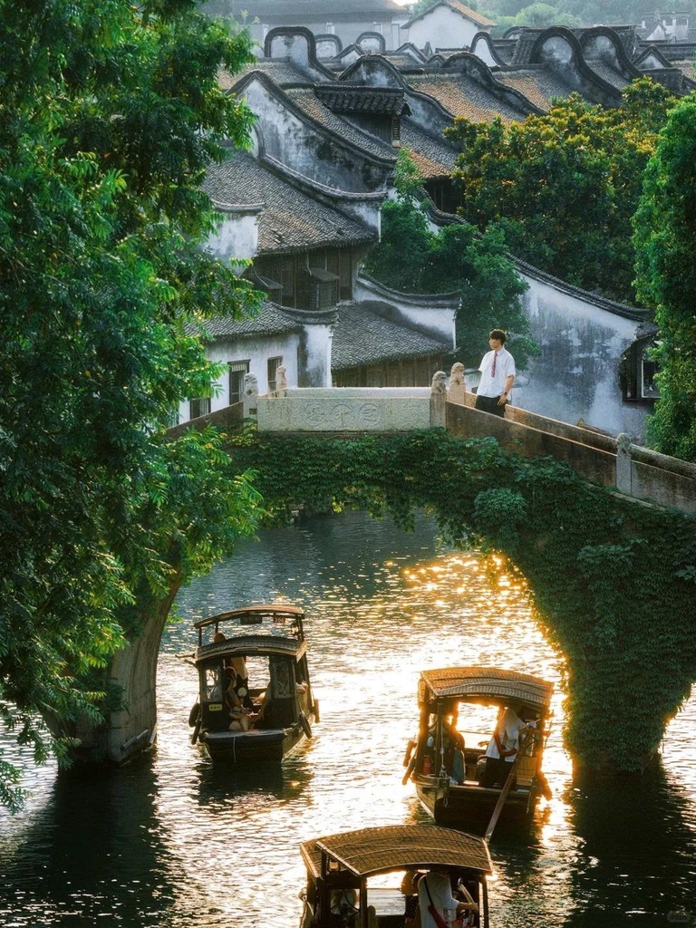 Đoàn ăn trưa tại nhà hàng sau đó đoàn khởi hành đến Ô Trấn - là một trong sáu thị trấn cổ nổi tiếng nhất vùng Giang Nam, được mệnh danh là “Venice của phương Đông”. Với hơn một nghìn năm lịch sử, Ô Trấn giữ nguyên vẻ đẹp cổ kính của những con đường lát đá, mái ngói rêu phong và dòng kênh xanh biếc len lỏi quanh làng. Những cây cầu đá cong cong, ngôi nhà gỗ cổ kính soi bóng xuống mặt nước tĩnh lặng tạo nên khung cảnh trữ tình, nên thơ. Đến Ô Trấn, du khách như được quay ngược dòng thời gian, hòa mình vào nhịp sống yên bình, thưởng ngoạn cảnh quan sông nước hữu tình và khám phá nét văn hóa đặc sắc của vùng Giang Nam trầm mặc.